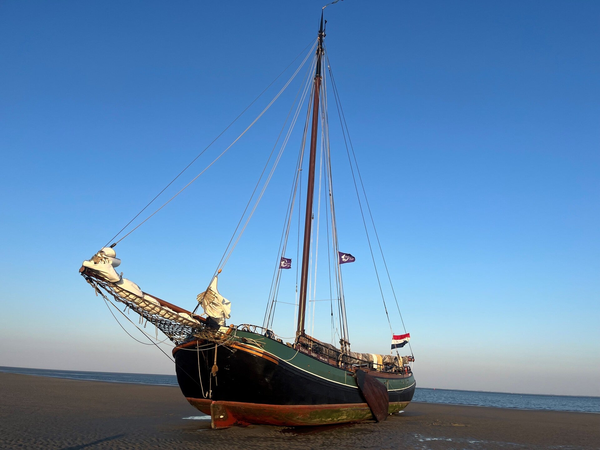 Droogvallen, ook dat ga je vast ervaren. Vier uur voor laag water liggen jullie bij een zandbank, de eb zet in en na een paar uur loop je rond op de zeebodem, en verbaas je je hoe groot het schip is. In de priel en in de kuil achter het roer is het water aangenaam warm, heerlijk om te poedelen. Op het IJsselmeer duik je, wie durft, vanaf de kluiverboom, in het koele water. Je zwemt rondom het schip, en zet dat vinkje op de bucketlist.